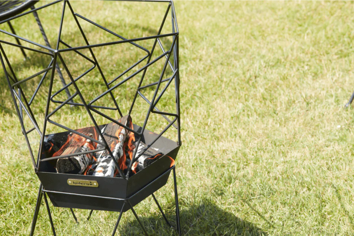 Brasero en acier laqué, posé sur 5 pieds pour une stabilité maximale. Très ouvert grâce à ses formes géométriques élégantes, pour profiter un maximum des flammes