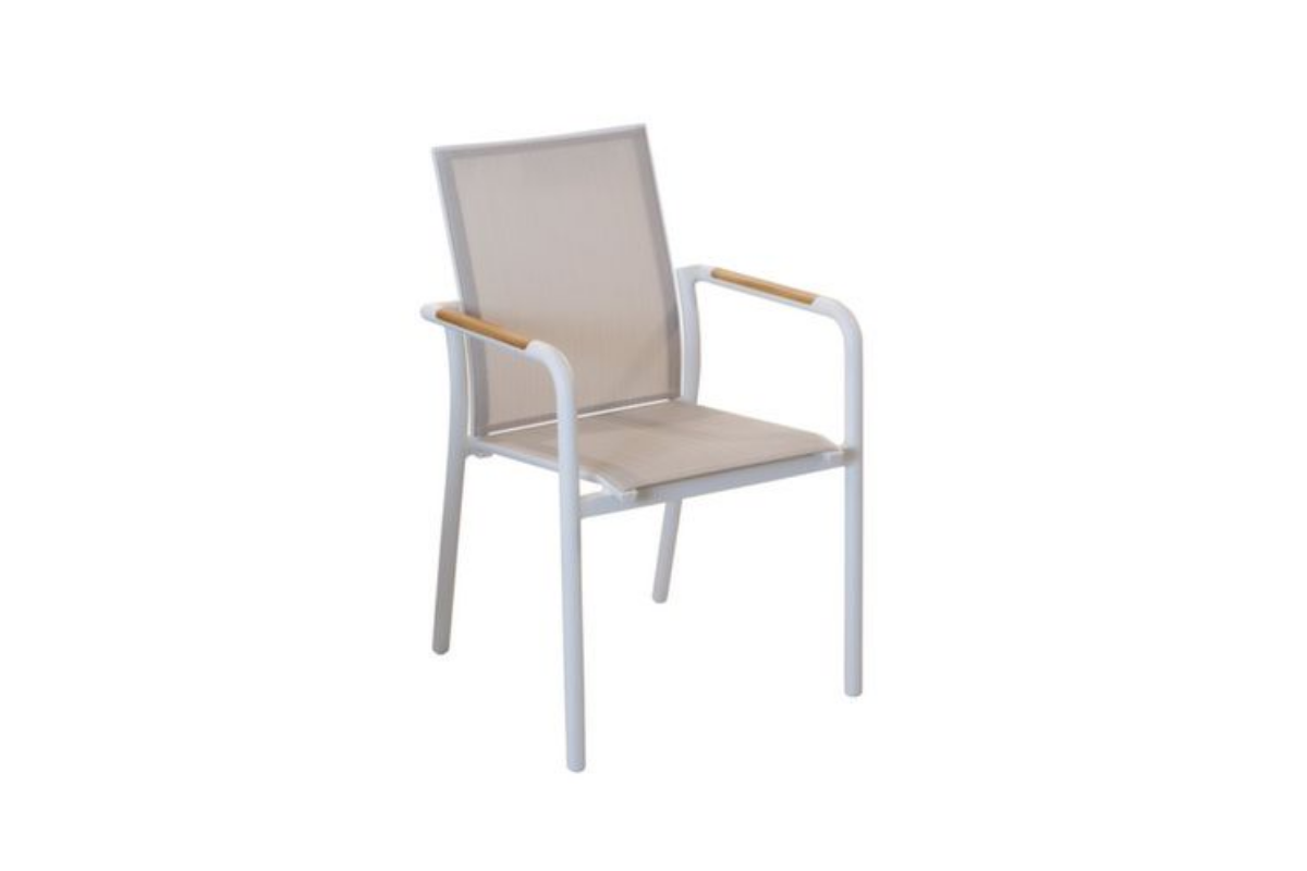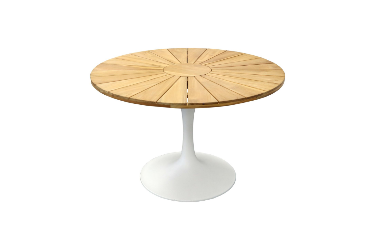 Ensemble Repas Soleil D120CM Inox/Teck Blanc/Teck/Aroha 4 places