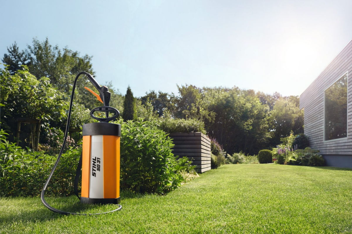 Pulvérisateur à pression particulièrement maniable, pour une utilisation sur le balcon et dans le jardin. Transport confortable grâce au harnais. De série avec buse à cône creux.