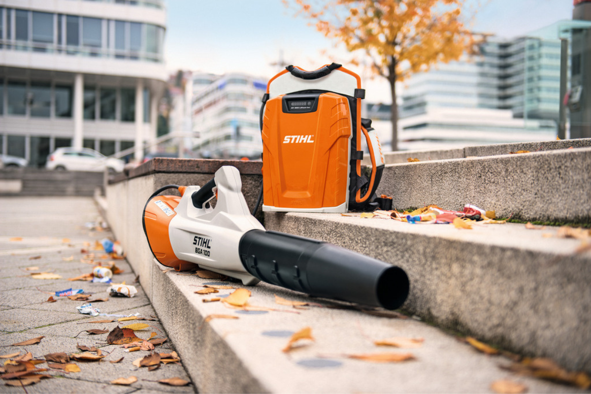 Souffleur sur batterie agréablement silencieux, léger et très puissant pour une utilisation professionnelle, en particulier dans des zones urbaines sensibles au bruit. Buse ronde, poignée caoutchoutée, trois régimes de puissance avec fonction boost supplémentaire, réglage en longueur continu, anneau pour le support crochet, poids 2,5 kg. Pour de plus longs intervalles de travail, il est conseillé d'utiliser la batterie dorsale AR 3000 avec le support crochet.