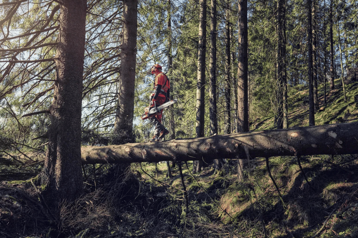 La 572XP® G est une tronçonneuse thermique avec un design moderne et destinée aux professionnels de la forêt.